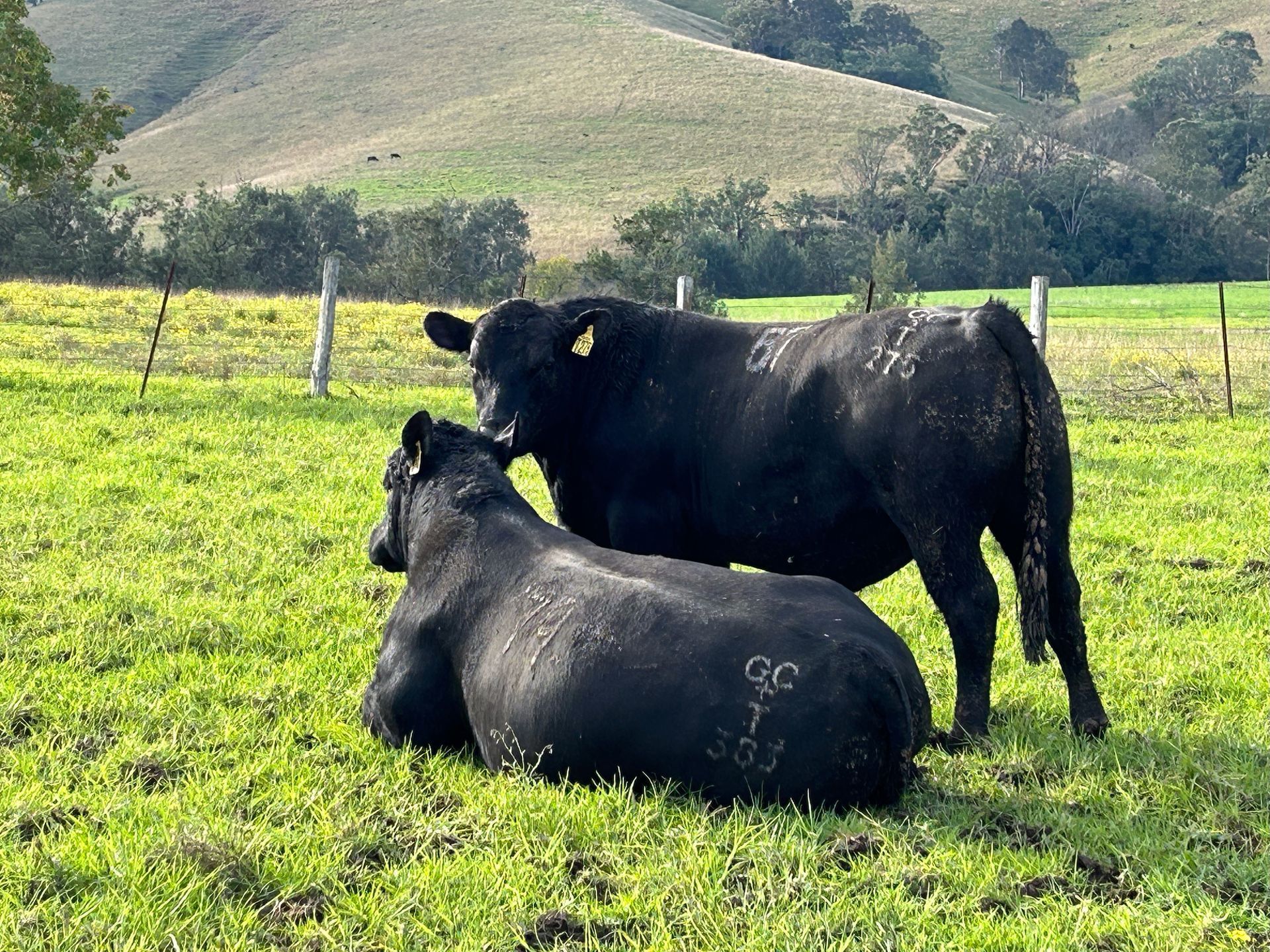 Both the bulls' and cows' genetics matter in our aim to breed quality Angus calves. We added some 3 year old quality Angus breeding cows (preg tested in calf) to the herd in February 2025, pictured below.