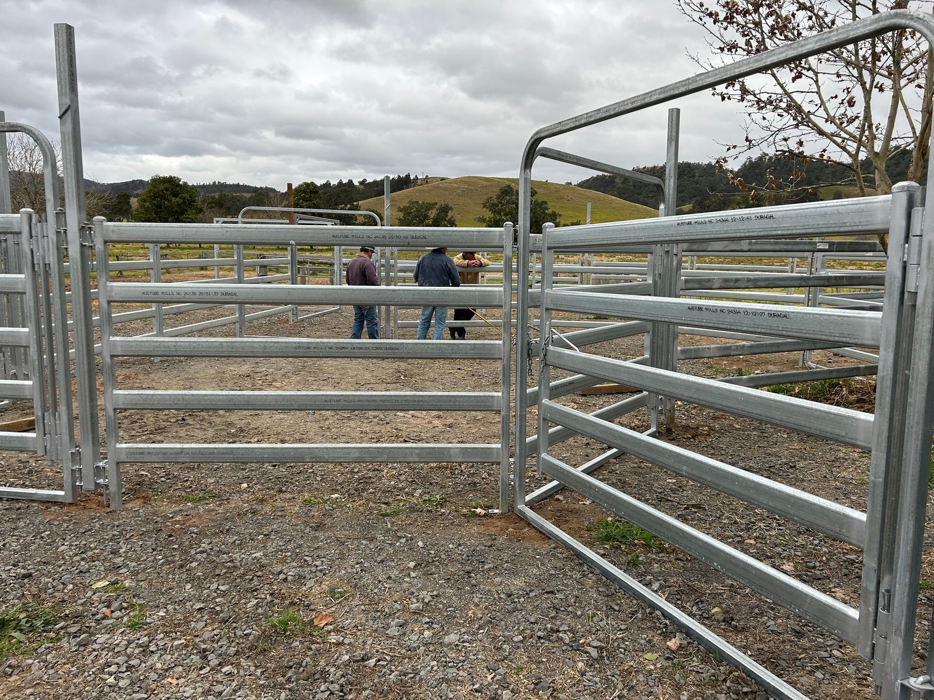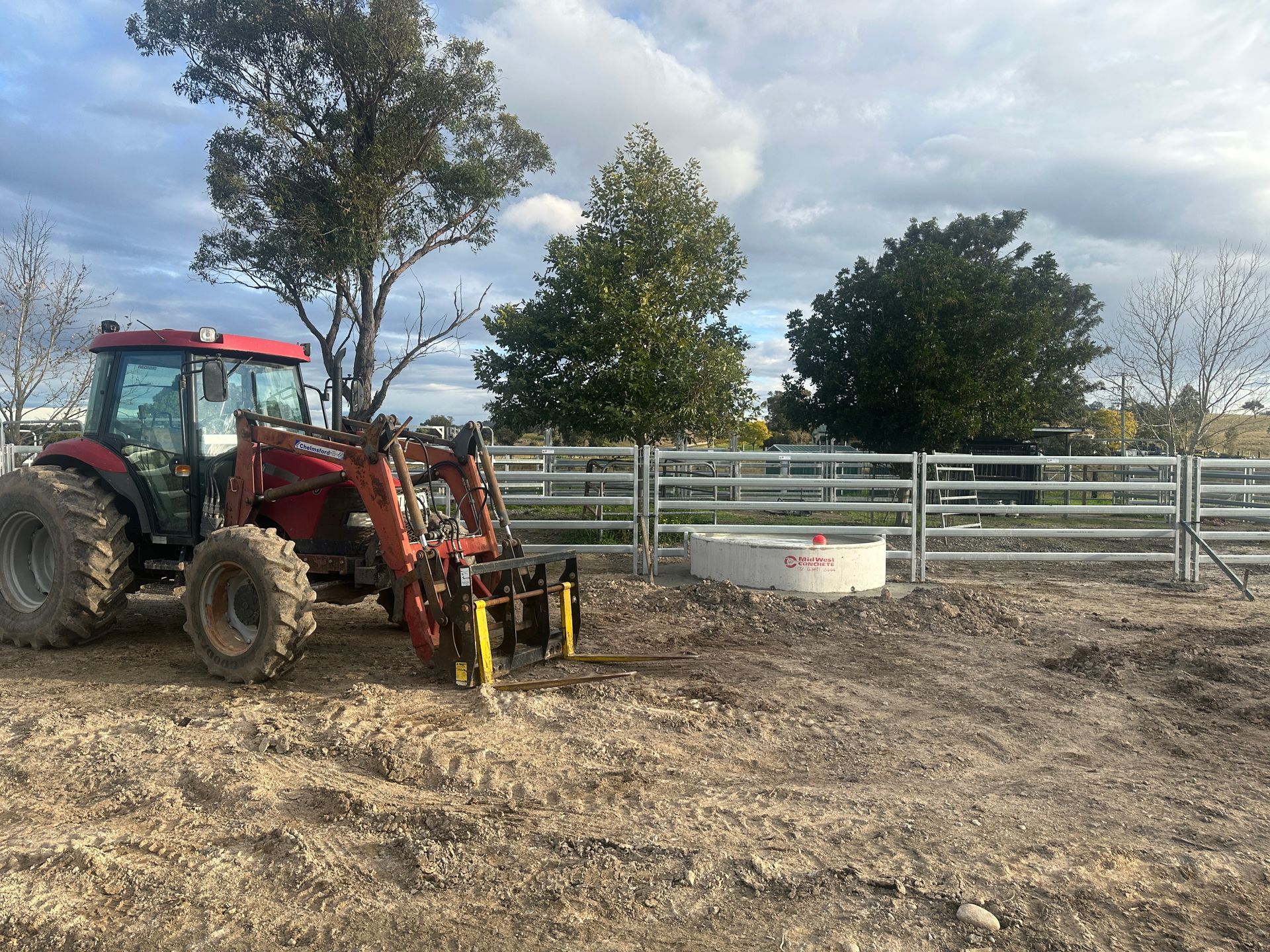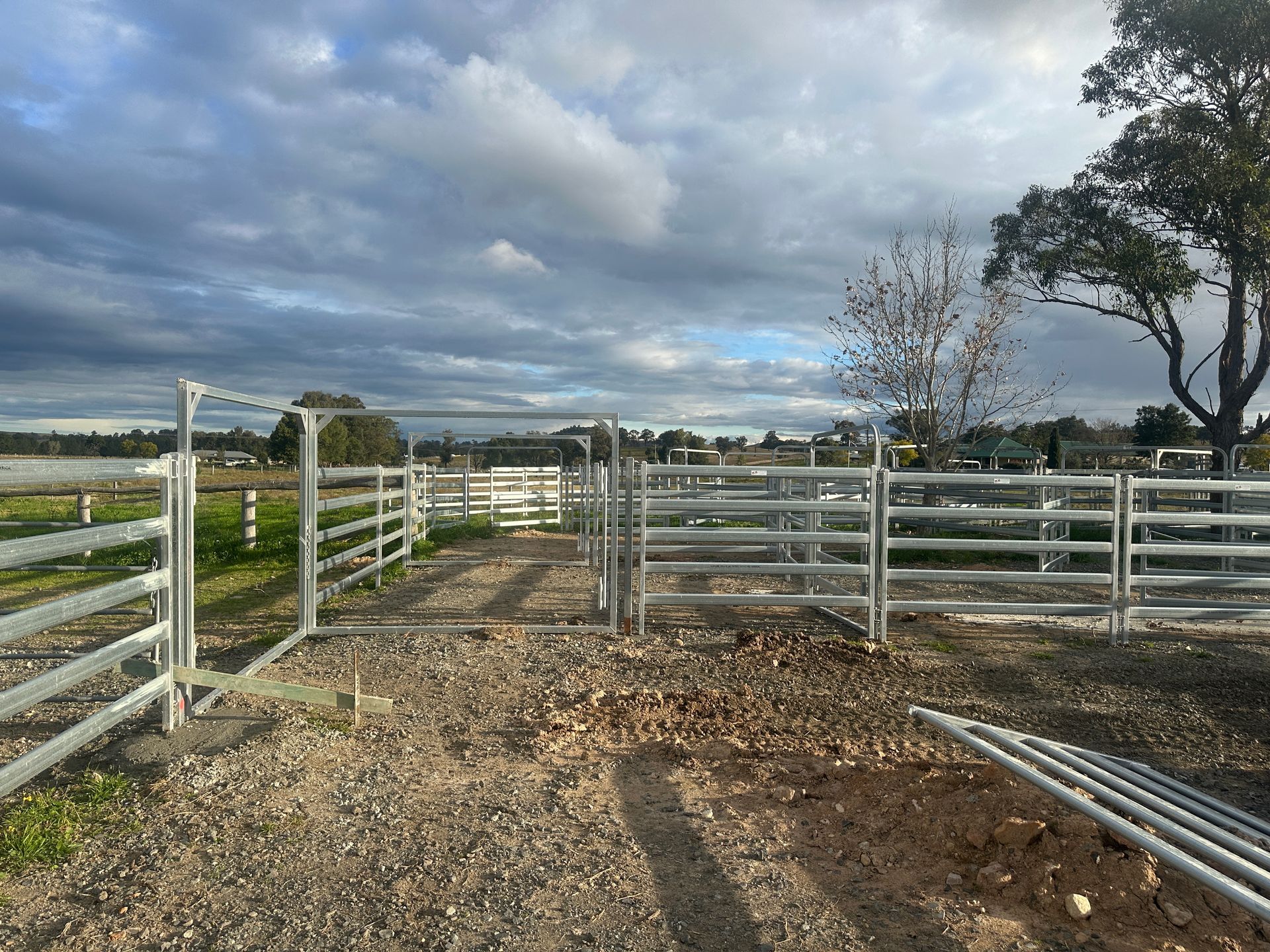 The main working cattle yards were built over 100 years ago in their current location. Various parts of the yards have been replaced over the years. Initially this was with wooden post and rail. The newer style cattle yards are now metal and are very strong and durable, galvanised to protect against rust. After a lot of hard work by the Wilkinsons, the older wooden yards have just been replaced with all metal panels, with particular upright structural posts cemented in place. Removing the majority of the yards during a period of heifer calving presented some challenges, but we now have a second working cattle crush at our loading yards. This was our backup to be used for any calving difficulties while the main yards were completed.
